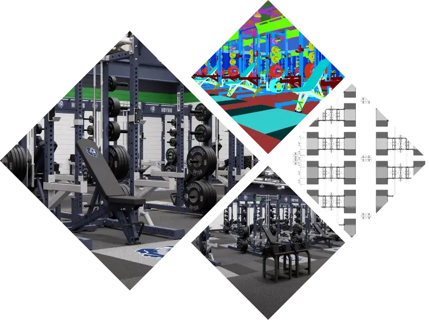 Coaches and Athletic Directors…Our company can design and layout your new weight room, we do this for high schools and also colleges.We help develop the floor plan for the best flow and use of space. Our team provides several solutions for your new weight room or renovation as well, from flooring to all-rubber platforms, strength equipment and all of the accessories like bumper plates and bars.